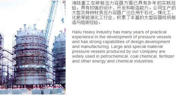 蘇州海陸重工股份有限公司位于江蘇省張家港市開發(fā)區(qū),是國內(nèi)一流的節(jié)能環(huán)保設(shè)備的專業(yè)設(shè)計制造企業(yè),目前并已初步形成鍋爐產(chǎn)品、大型壓力容器、核電設(shè)備、低溫產(chǎn)品、環(huán)保工程共同發(fā)展的業(yè)務(wù)格局。公司創(chuàng)建于1956年,注冊資本51640萬元,占地面積近50萬平米。公司下設(shè)八個控股子公司,一個余熱鍋爐研究所,在瑞士、北京、武漢、南京、上海、杭州、廣州等地設(shè)立分支機構(gòu),擁有雄厚的研發(fā)實力。公司秉承“科技領(lǐng)航、業(yè)界先鋒”的發(fā)展理念,注重研究廢熱、余熱利用和環(huán)境保護相結(jié)合的新技術(shù)研發(fā),自主設(shè)計能力居同行前列;公司承擔(dān)過國家863計劃,江蘇省科技成果轉(zhuǎn)化專項資金,榮獲國家科技進步二等獎,產(chǎn)品擁有核心自主知識產(chǎn)權(quán)并取得專利50多項;公司推行國際先進的管理體系標(biāo)準(zhǔn)和認證,擁有 A級鍋爐制造許可證,A1、A2、A3級壓力容器設(shè)計和制造許可證,取得了民用核承壓設(shè)備制造資格許可證、美國機械工程師學(xué)會(ASME)“S”、“U”鋼印,通過了ISO9001質(zhì)量體系認證、健康體系認證和14000環(huán)境體系認證;公司設(shè)備先進,裝備精良,專業(yè)嚴謹?shù)闹圃炖砟畲蛟斐銎焚|(zhì)非凡、質(zhì)量一流的“海陸”品牌聲譽。